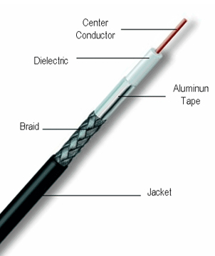 1) 75 ohm Coaxial Cable RG6, RG59, RG11;