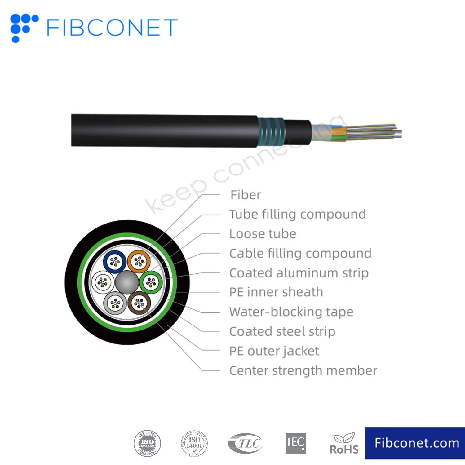 Description:Stranded Armored Cable is positioned in a loose tube made of a high modulus plastic. The tubes are filled with a water-resistant filling compound. A steel wire, sometimes sheathed with polyethylene (PE) for cable with high fiber count, locates in the center of core as a metallic strength member. Tubes (and fillers) are stranded around the strength member into a compact and circular cable core. The PSP is longitudinally applied over the cable core, which is filled with the filling compound to protect it from water ingress. The cable is completed with a PE sheath.