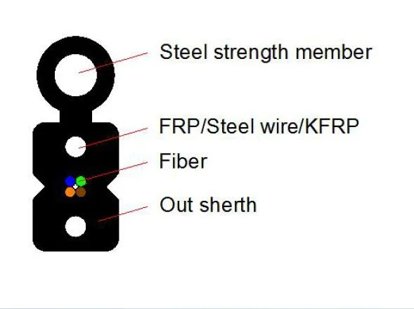 1/2/4 core G657a1 fiber optic ftth drop cableThis fiber optic ftth drop cable is used for fiber to the home project,with 1 pcs 0.8/1.0/1.2mm steel wire as messenger,2 pcs 0.5mm FRP,it's a self support type ftth drop cable,with 1/2/4/8 core capacity,G657a1 or G657a2 ensure the bending radius,LSZH......
