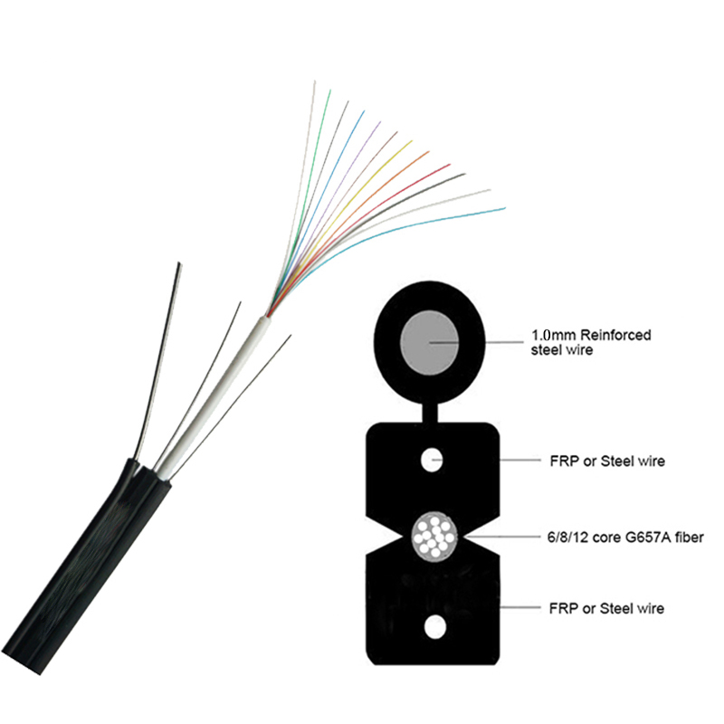 Product description:Optical fiber(s) in the center, dual paralleled steel wires (or FRP) as strength member, extruded LSZH sheath.