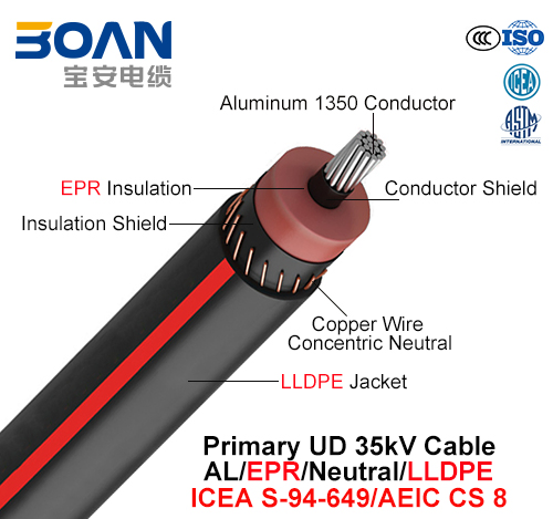 Primary UD Cable, 35 KV, Al/EPR/Neutral/LLDPE (AEIC CS 8/ICEA S-94-649)Applications:Predominantly used for primary underground distribution; Suitable for use in wet or dry locations, direct burial&......